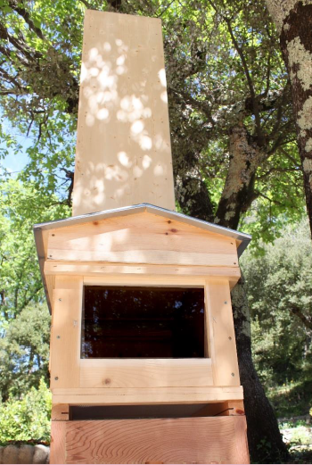 Ruche conçue par l’association et son équipe, avec vitre pour observer le fonctionnement interne des abeilles