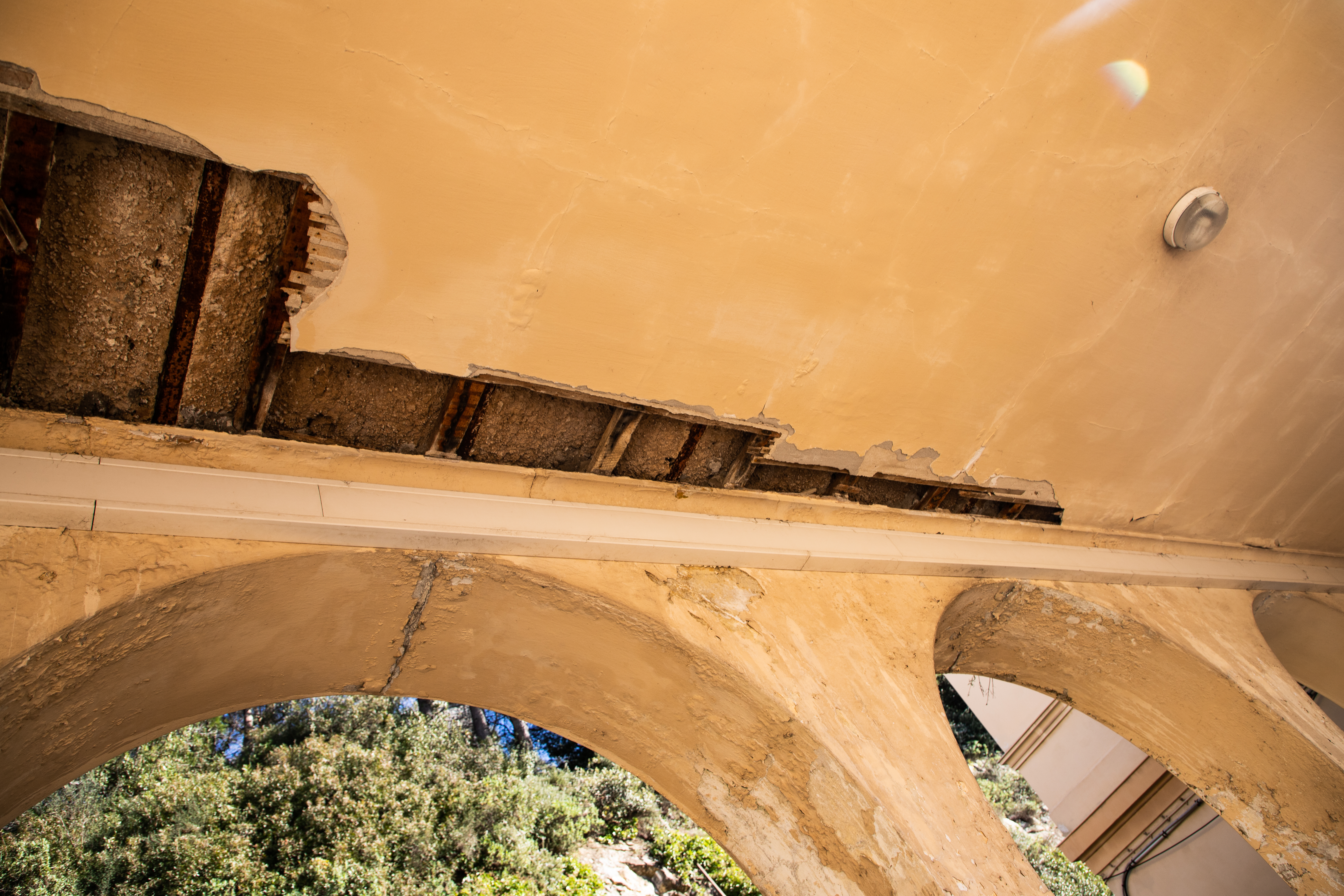 Les travaux ont débuté en janvier 2022 pour une durée de 6 mois. Ces premières opérations permettront de refaire la toitures et les chenaux des bâtiment sud et nord, réviser la toiture centrale, remettre en état les deux coursives (étanchéité, carreaux, portes…), installer des volets au rez-de-chaussée et effectuer les réparations sur la façade nord et les statues du bâtiment central.